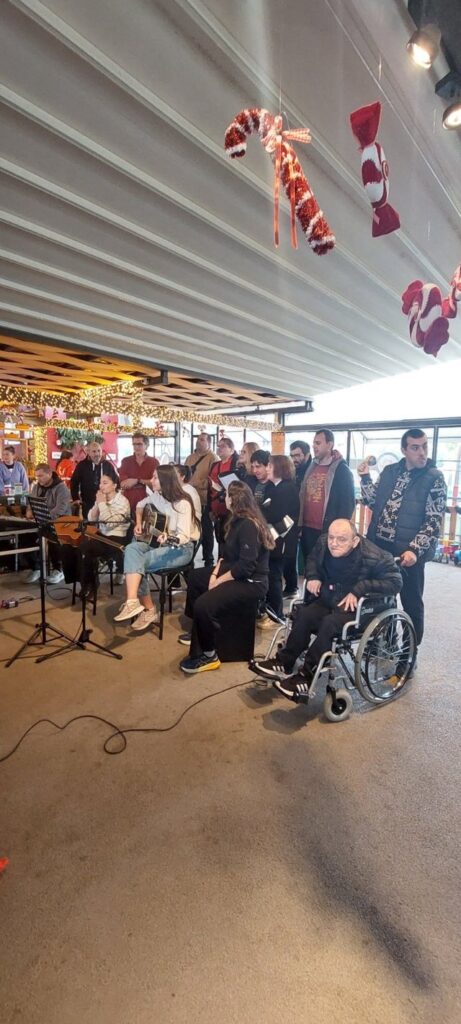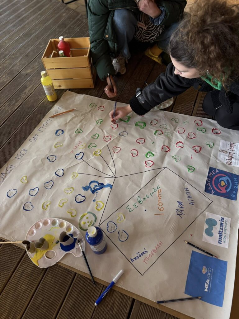 Στη συνέχεια, αναλάβαμε το μουσικοκινητικό κομμάτι, όπου με τους ωφελούμενούς μας χορέψαμε, τραγουδήσαμε και διασκεδάσαμε με όλα τα παιδιά. Η χαρά στα πρόσωπά τους ήταν η μεγαλύτερη ανταμοιβή μας και μας υπενθύμισε πόσο σημαντικό είναι να δημιουργούμε χώρους όπου κάθε παιδί μπορεί να εκφραστεί ελεύθερα και να νιώθει πως ανήκει.