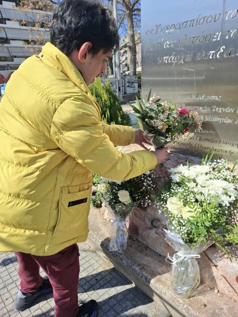 Με αφορμή την συμπλήρωση τριών ετών από την τραγωδία των Τεμπών, οι ωφελούμενοί και το προσωπικό επισκεφτήκαμε το μνημείο για τα θύματα στον ΟΣΕ.